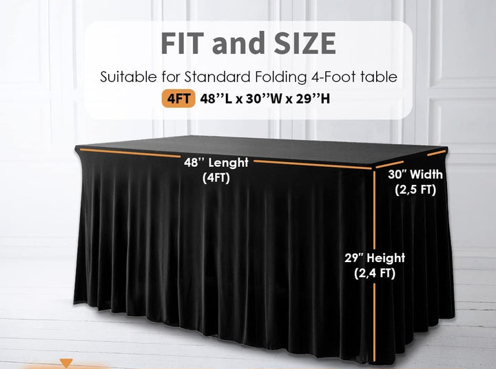 4 Ft Black Spandex Table Skirt for Rectangle Tables Rental