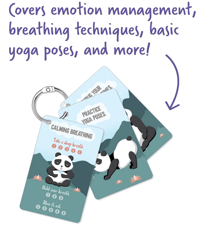 PreK-Grade 5, Book Ring and Calming Strategies, Breathing Techniques, Yoga Poses, Counting Exercises Flash Cards (16 pc)